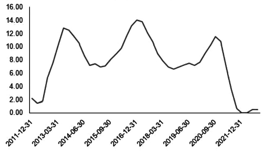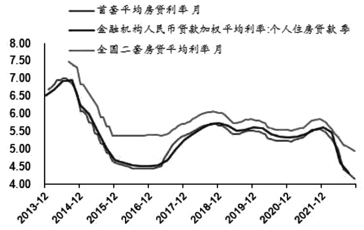 銷售方面,2022年年初以來金融機構住房貸款平均利率持續下降,年初為5.49%,11月已降至4.34%,是近10年來降幅僅次于2014—2016年的一次。然而,商品房銷售增速回暖有限,雖較年初低位好轉,但未能修復至正增長區間,原因在于目前的地產銷售政策主要針對首套剛需,并未完全放開。2022年首套房貸利率降幅明顯高于二套房,剛需的釋放會帶來地產銷售的改善,但較難形成全面的大幅反彈。