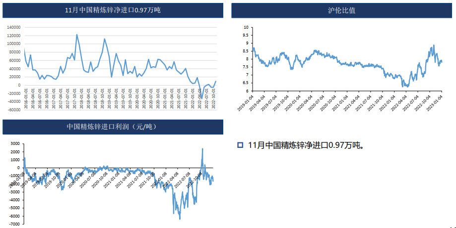 當前國內庫存低位,預計疫情管控放松后貨運逐步改善,到貨量或逐步增加,同時下游需求仍偏弱,部分下游提前放假,鋅價偏弱震蕩。