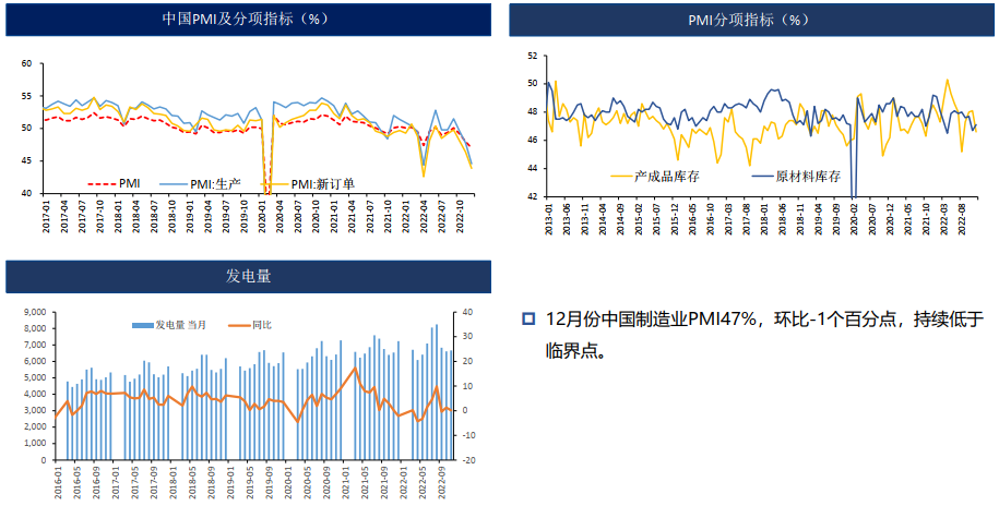國內汽車產銷旺季不旺,地產偏弱, 12月制造業環比下滑至榮枯線以下。