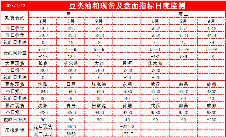 國內方面:供給端:2023年國產大豆種植面積預計增加。進口大豆成本下降,1月到港量將有所增加。今日大豆港口庫存626萬,較上日減少1.13萬噸。雖然今日港口庫存有所減少,但周期性庫存回升不可避免。