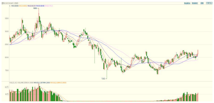 期貨方面:塑料2305合約增倉上行,最高上行至8298元/噸,最低 價8127元/噸,最終收盤于8268元/噸,在20日均線上方,漲幅1.79%。 持倉量增加37073手至383416手。