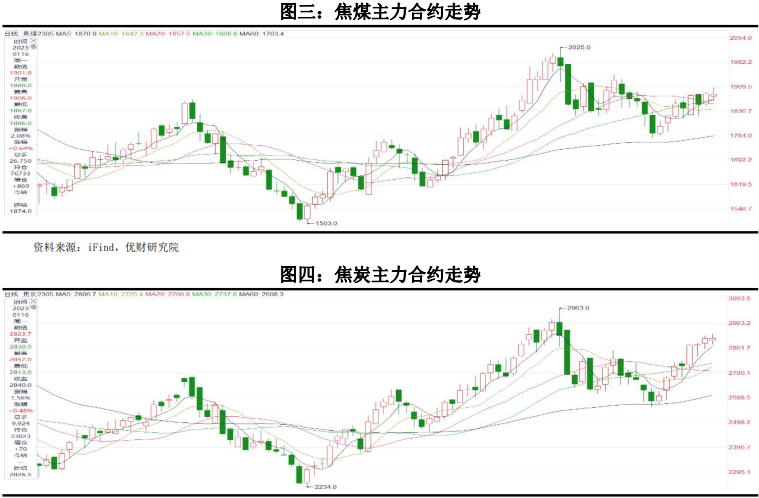 上周現貨逐步進入節前放假狀態,上下游貿易氛圍降溫明顯,競拍市場延續個別調整的風格,焦企價格落實第二輪提降。盤面方面,受澳煤通關消息影響,焦煤仍呈相對弱勢,周中出現擾動,不過受政策調整等宏觀驅動影響,黑鏈整體形成共振上行驅動,反彈趨勢得以延續,2305 合約焦煤周漲幅 3.57%報 1888 元/噸,周漲幅6.05%報 2840 元/噸。