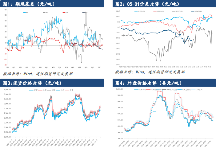 市場表現:期貨合約價格偏弱運行。UR2305 收盤價2571 元/噸,跌幅 1.61%,成交量 127208 手,持倉量 138046 手,凈減3238 手。