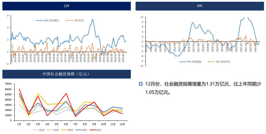 美國12月CPI同比增長6.5%,符合預期。剔除波動較大的食品和能源價格后,同比漲幅為5.7%,漲幅小幅收窄。通脹如預期下行,美聯儲加息放緩預期增強,需關注月底聯儲議息會議。