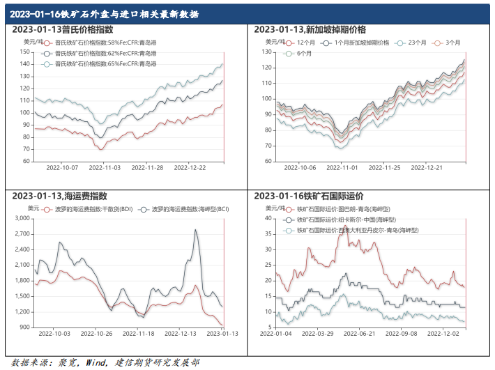 1月13日,發改委約談資訊企業,15日發文表示資訊企業存在轉載不實舊聞,混淆視聽的情況,對市場造成不良影響。值得注意的是本次為繼1月9日以來發改委第二次開展對鐵礦石市場的監管。由于終端需求仍舊疲軟,當前庫存水平無法支持鐵礦石持續上漲,在發改委監管下鐵礦石存在進一步下跌空間。但相較22年2月14日的三部委聯合監管時間點,鐵礦石港口庫存相對較低,且美元指數持續回落,因此鐵礦石雖然仍存較大的下跌風險,但預計下跌幅度或將不及22年年初。