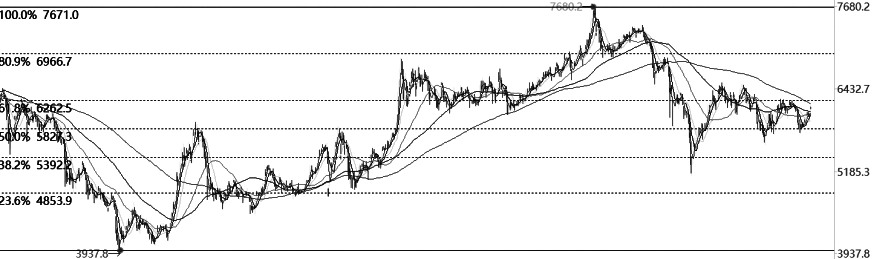 2021年9月中旬,IC創出近7年的高點后開始回落,在黃金分割0.382對應的5390點的支撐位止跌反彈,之后呈現箱體振蕩走勢,目前臨近6260點的箱體上沿。此外,MACD指標金叉后持續發散,顯示整體走勢偏強,而KDJ指標高位死叉,RSI指標高位黏合,顯示短期存在回調需求。整體來說,部分指標走弱,短期繼續向上突破有一定難度。