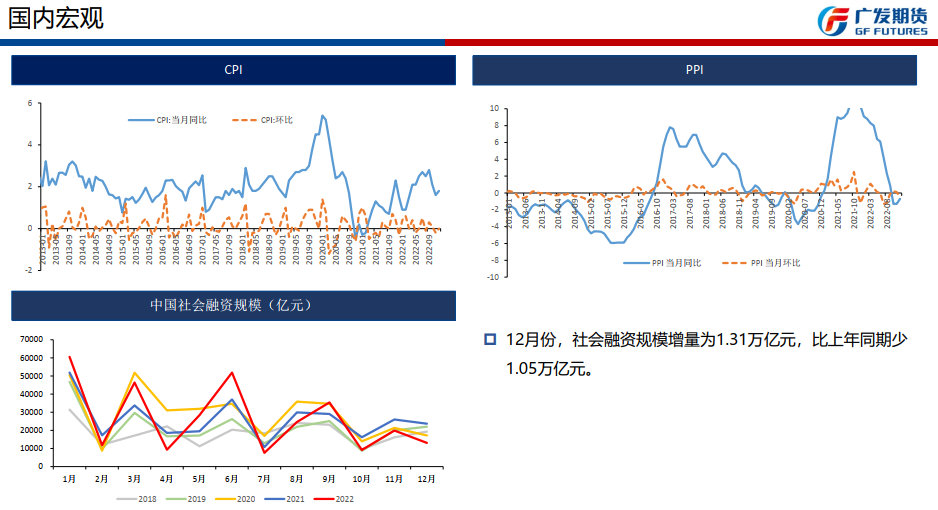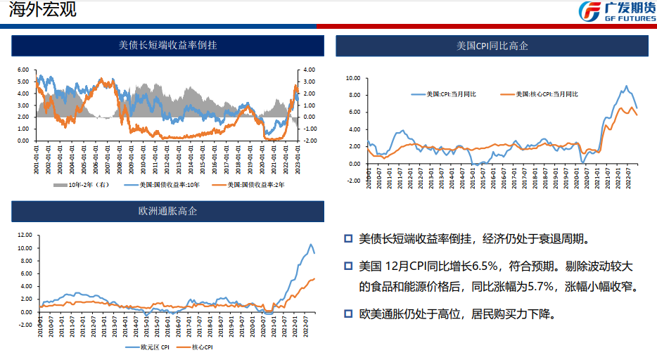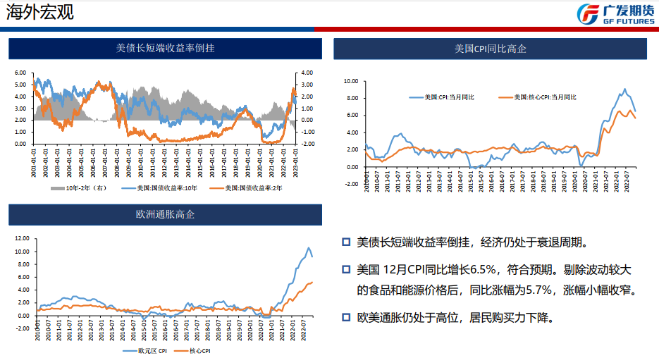 美國12月CPI同比增長6.5%,符合預期。剔除波動較大的食品和能源價格后,同比漲幅為5.7%,漲幅小幅收窄。通脹如預期下行,美聯儲加息放緩預期增強,需關注月底聯儲議息會議。