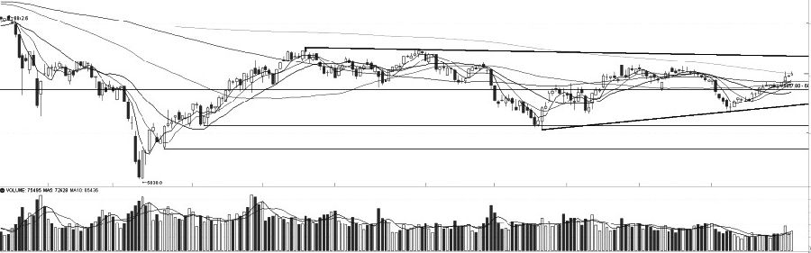 IF加權運行重心不斷上移,上升通道保持完好。均線方面,MA5、MA10、MA20與MA60多頭排列,中短期上漲趨勢未改,本周突破MA250的移動壓力線后,市場情緒較高。指標方面,MACD紅柱平穩并維持在高位,且DIF與DEA仍在零軸之上,表明IF加權依然存在上漲動力。當前IF加權處于上升通道,節奏控制良好,后市關注通道上沿的壓制情況。