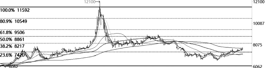 2021年10月,錳硅期貨創出上市以來12100元/噸的高點之后大幅回落,直至跌至黃金分割0.382對應的8220元/噸的支撐位才止跌企穩。之后,錳硅期貨經歷了一段時間的窄幅振蕩后再次下挫,價格臨近前期6700元/噸的低點才逐步止跌反彈。目前,硅錳期貨價格呈現震蕩上行的走勢。錳硅期貨均線系統呈現多頭排列,顯示整體漲勢保持良好。MACD指標、KDJ指標、RSI指標反復交織出現了鈍化,并且MACD指標出現了較為明顯的頂背離的跡象。錳硅期貨主力SM2305合約的上漲伴隨著增倉放量,整體上漲動能不斷積聚,價格有望繼續上行。錳硅期貨呈現震蕩上行的走勢,并且上漲有量倉配合,整體偏強的格局不變。需要注意的是,錳硅期貨也出現了指標頂背離的情況,不排除短期價格下挫修復指標。(新疆果業 黃李強)