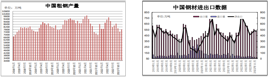據統計局發布數據顯示,2022年12月,中國粗鋼產量7789萬噸,同比下降9.8%;1-12月,中國粗鋼產量101300萬噸,同比下降2.1%。