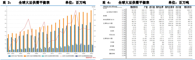 巴西 2023 年增加生物柴油強制摻混率,巴西從 2022 年 4 月 1 日開始轉向 B15 混合燃料,巴西 70%的生物柴油是由豆油制成,估計巴西生物柴油行業 2023 年將消耗 3000 萬噸大豆。不過美國 EPA2022 年12 月1 日提議,2023年美國生物質柴油摻混量為 28.2 億加侖,比 2022 年增加 2%,這一目標遠遠低估了美國對該類型燃料需求,市場對此利空消息反應更強烈。