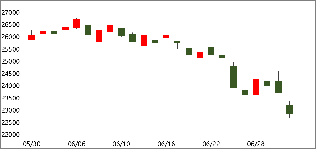 滬鋅ZN2208收盤價周內下跌4.16%至22910元/噸。