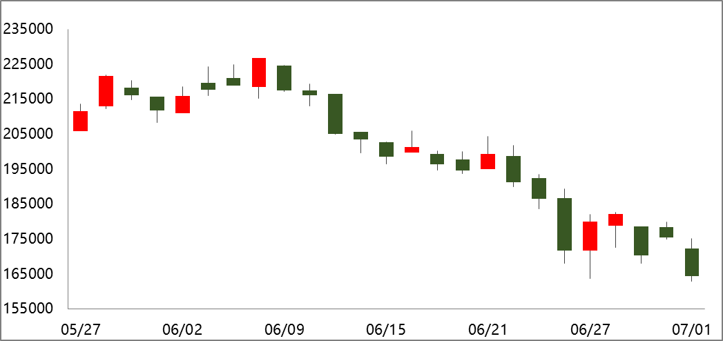 截止2022年7月1日,LME鎳庫存為6.6萬噸,較上周下降798噸。