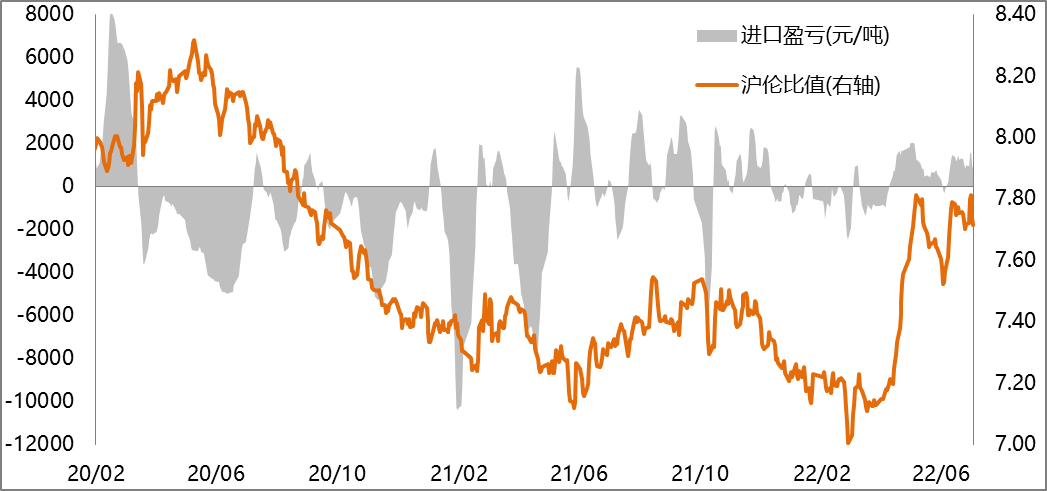 截止2022年7月8日當周平均進口盈利768元/噸,進口有利潤。