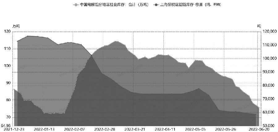 2022年上半年,滬鋁走勢呈現先揚后抑態勢。1月至3月7日,海外天然氣價格大幅上漲,鋁冶煉成本增加,供應風險加大,疊加俄烏沖突爆發,俄鋁供應擔憂加劇。而我國廣西疫情影響氧化鋁和電解鋁供應,導致鋁價一路走高,接近2021年歷史高點。3月8日至6月21日,海外天然氣價格高位回落,國內電解鋁產能在利潤驅動下投產復產提速。需求端,因疫情影響需求下滑,疊加海外貨幣政策逐漸收緊,鋁價遭受重挫。