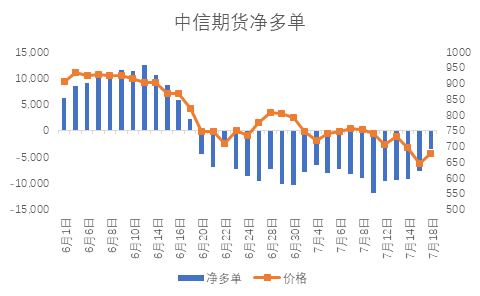 6月以來,中信期貨席位凈多單與價格呈現較高的正相關性: