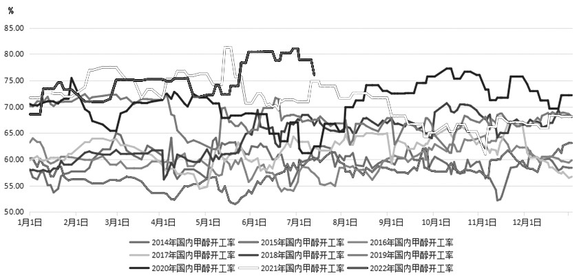 圖為全國甲醇裝置開工率走勢