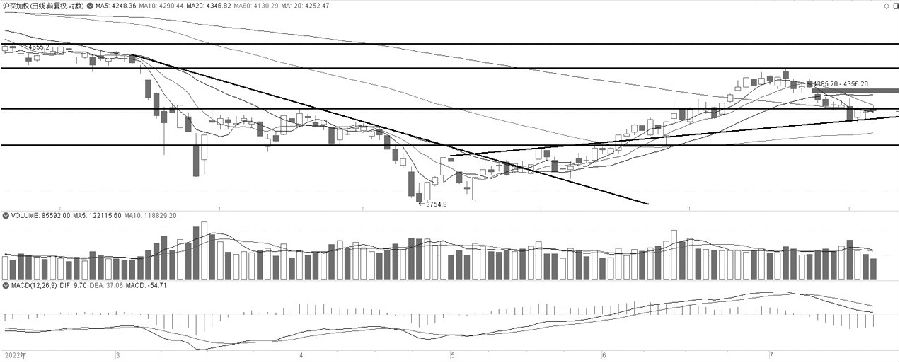 十債加權K線錄得九連陽后,經過兩日的短暫調整,昨日再度上攻,并創反彈新高,表現相對強勢。均線方面,繼MA5先后與MA10、MA20、MA60形成金叉,MA10與MA20形成金叉后,MA10與MA60也形成金叉,表明十債加權短中期趨勢向上。指標方面,MACD連續錄得九根紅柱,紅柱再度擴大,DIF率先重新回到零軸上方,DEA離零軸僅一步之遙,表明十債加權仍有反彈動力。整體上看,十債加權均線與指標得到充分修復,上方壓力在5月31日形成的跳空缺口附近,后市繼續關注回補該缺口的情況。(招商期貨 于虎山)