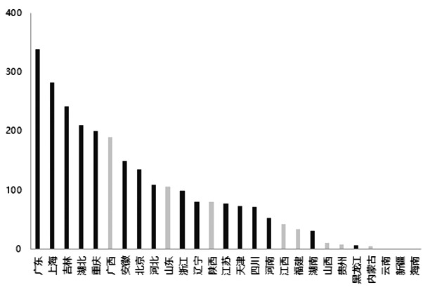 圖為各省份汽車產量