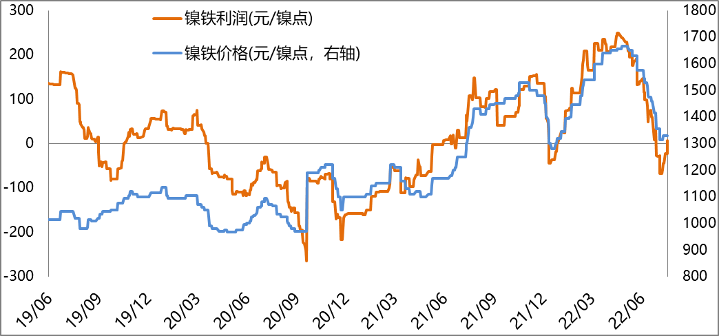 截止2022年7月22日鎳鐵平均生產利潤出現虧損17元/鎳點,上周虧損55元/鎳點。