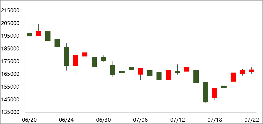 宏觀面,上周歐央行超預期加息50BP,表明歐洲通脹壓力大,且歐元區制造業自2021年5月見頂后持續回落,而周五公布的7月初值為49.6,下破榮枯線,表明歐洲亦面臨經濟衰退壓力。美聯儲議息會議于7月26-27日召開,關注其政策決定。