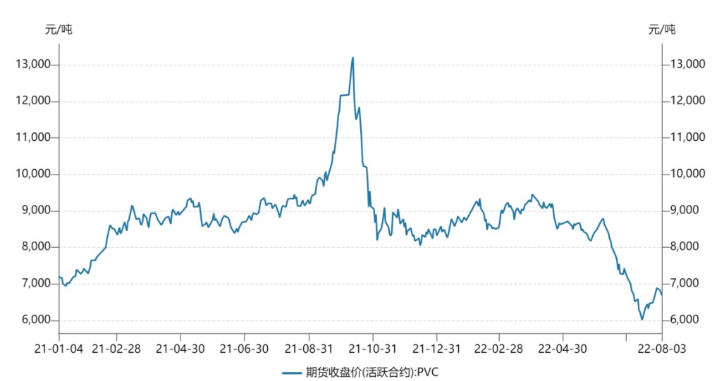 PVC2209合約當日收盤價6665元/噸,成交量108萬手,較上一日上漲8.44%。持倉量44.97萬手,較昨日上漲0.77%。