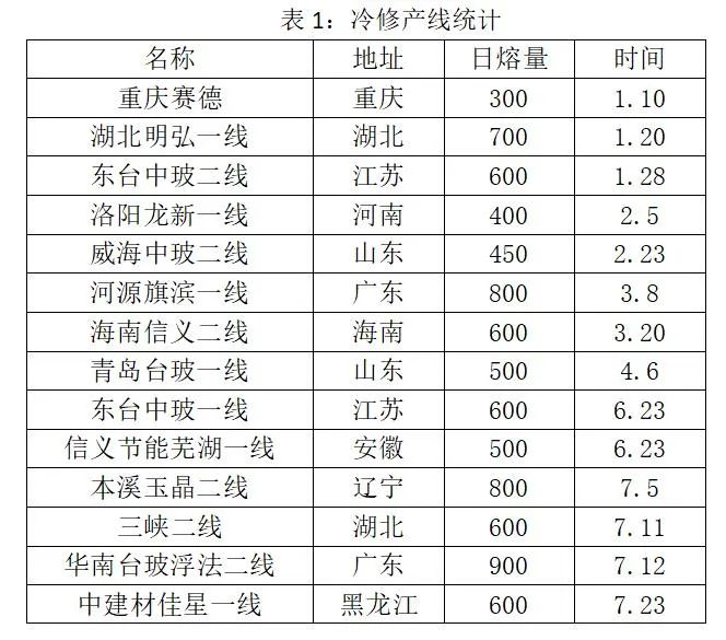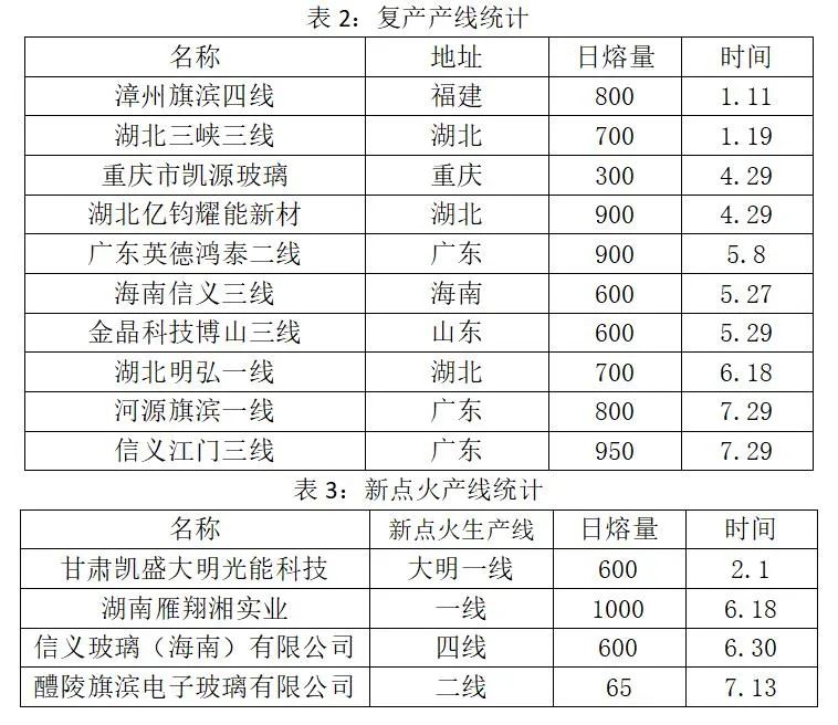 從實際跟蹤的產線數據表明,截止至上周,年內冷修產線17條,合計日熔量減少10750噸;復產產線10條,新點火產線4條,合計日熔量恢復9515噸。較年初日熔量凈減少1235噸,對比當前日熔總量16.8萬噸,占比較小。