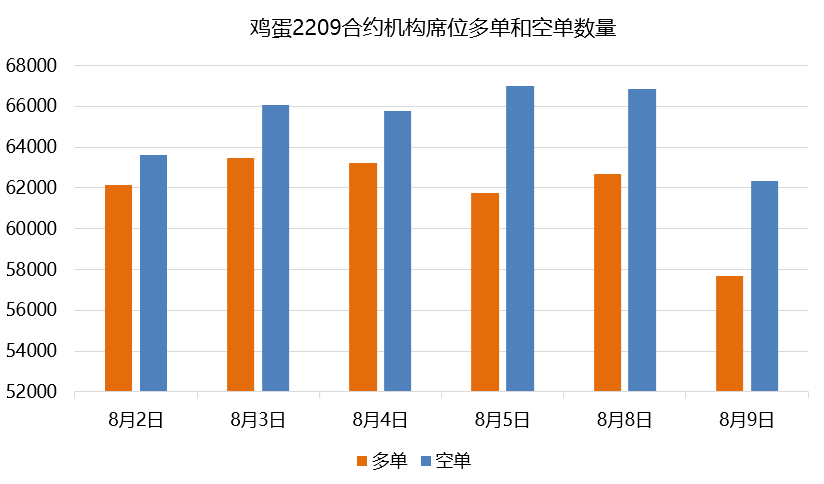 雞蛋2209合約前20席位期貨公司持倉數據顯示,今日多單倉位減少4136手至57678手,空單倉位減少4522手至62324手,凈持倉為空單4646手。