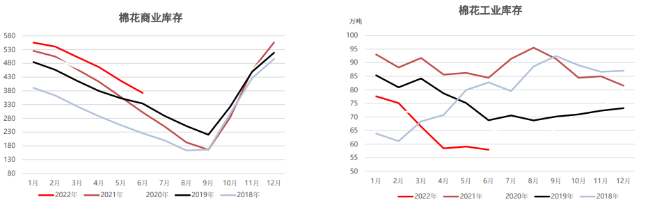 據棉花信息網發布的數據顯示,截至6月底棉花商業庫存為372.22萬噸,環比減少44.06萬噸,同比增加70.49萬噸。