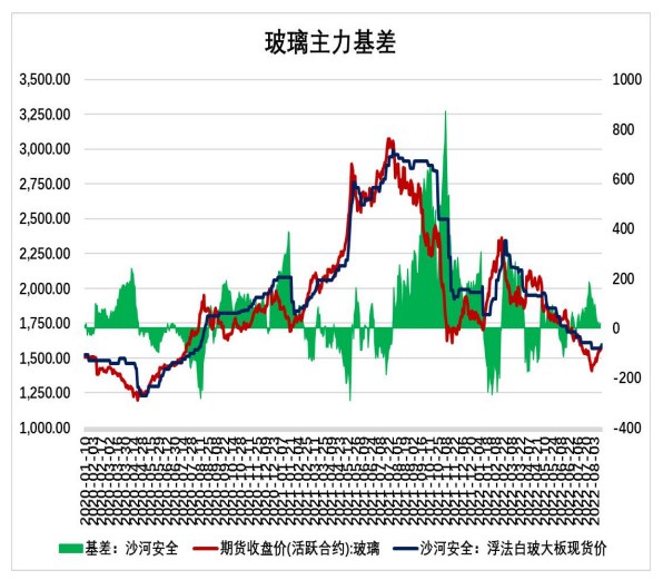 2、基差:浮法玻璃現貨基準地河北沙河安全現貨1616元/噸,FG2301收盤價為1556元/噸,基差為60元,期貨貼水現貨。