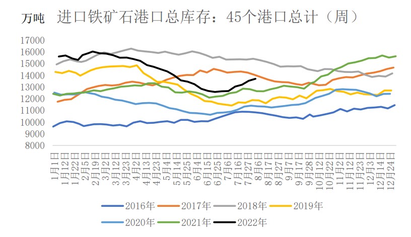 庫存:港口庫存13886.16萬噸,環比增加123.83萬噸。