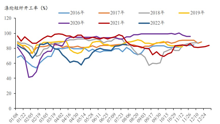 (2)供應端,裝置重啟,現貨供應增量。湖州中磊7.5萬噸新裝置預計8月初產出,新鳳鳴江蘇新拓新材30萬噸新裝置預計8月中下旬產出。截至8月5日,直紡滌短開工率86%(+0.8%)。