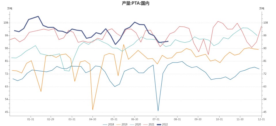 供應:開工率周均PTA產能利用率69.63%,較上周上升1.45個百分點。