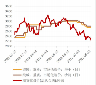 跟隨玻璃走弱,寬幅震蕩下跌態勢明顯,因玻璃遠期定價悲觀,純堿遠期貼水幅度大幅擴大。