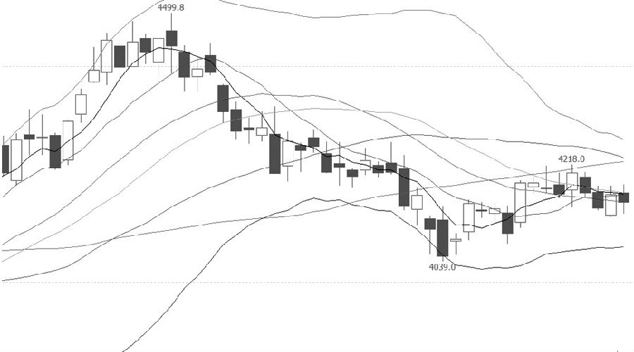 近期,IF指數在4200一線遇阻,之后振蕩整理。短期均線交織中期均線,長期均線位于最上方,指數在中、短期均線附近運行。同時,布林通道開口收窄,指數在中軌附近運行。此外,MACD指標處于金叉之上,但未能站上零軸。總之,技術指標顯示,IF指數整體偏弱,近期暫無明確方向。操作上,暫時觀望。