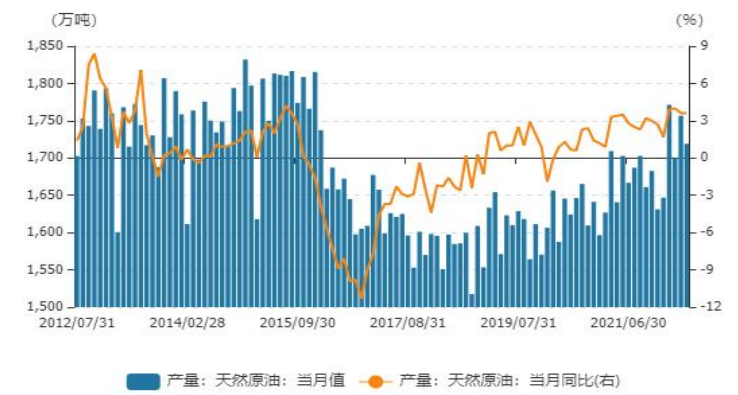 最新數據顯示,今年前7個月,全國原油產量1.2億噸,同比增長3.7%,天然氣產量1267億立方米,同比增長5.4%。截止至2022年08月26日,中國INE指定交割油庫原油庫存合計1,970,000桶,較上一日無變化。