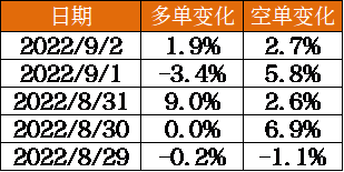前20席期貨公司近期(8.29-9.2)凈持倉與價格間呈正相關性。