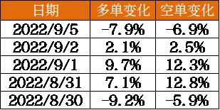 就空單而言,有10席減倉,其中有4席減倉超3千手,無席位增倉超3千手。