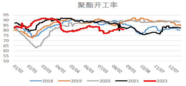 同時月內由于受到高溫天氣影響,聚酯企業錯峰生產,致使8月聚酯環節整體需求表現清淡,聚酯開工率未能出現顯著上升。