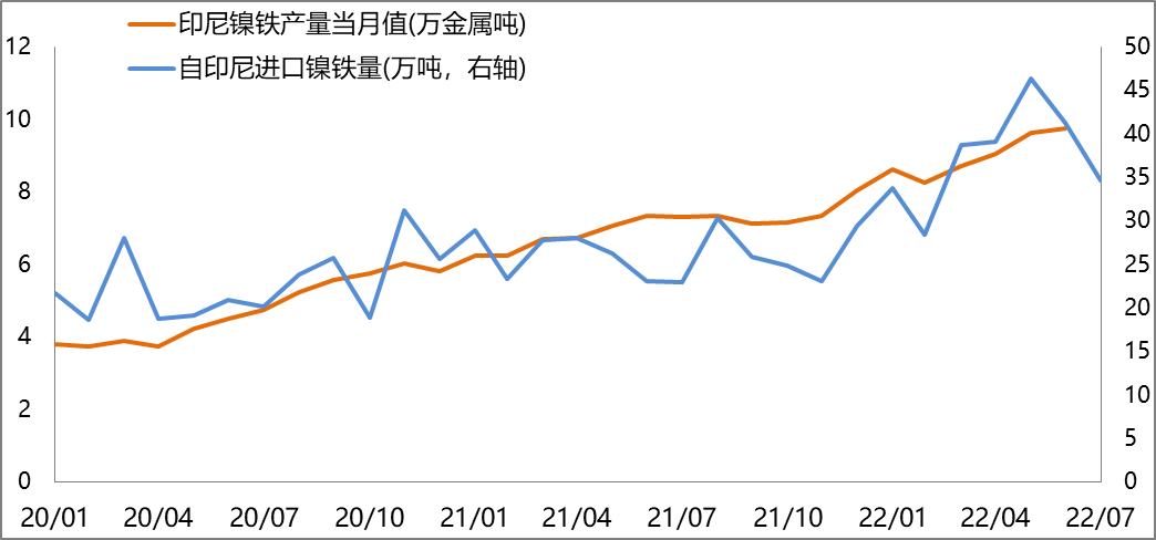 據海關總署數據顯示,2022年7月中國鎳鐵進口量37。84萬噸,環比減少12.97%,同比增34.58%。 印尼為最大供應國,當月自印尼進口鎳鐵34。7萬噸,環比減少16.07%,同比增50.82%。據Mysteel統計,7月因天氣原因港口派船不暢,印尼鎳鐵回流有所下降,8月開始周度印尼鎳鐵發貨量及中國的印尼鎳鐵到貨恢復常態。