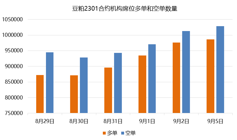 豆粕2301合約前20席位期貨公司持倉數據顯示,今日多單倉位增加9215手至985796手,空單倉位增加15891手至1028709手,凈持倉為空單42913手。