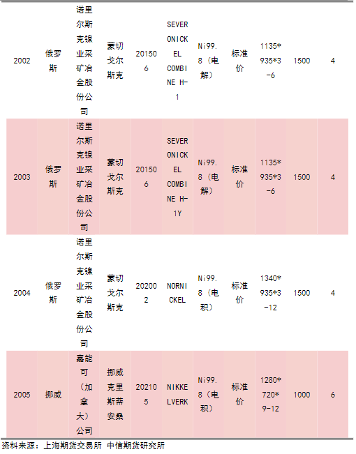 就上期所目前的可交割品牌來看,主要涉及到下表中所示品牌,其中國潤及NORNICKEL兩品牌目前已經停產,雪花品牌已經暫停交割,其余品牌尚可正常交割流通。
