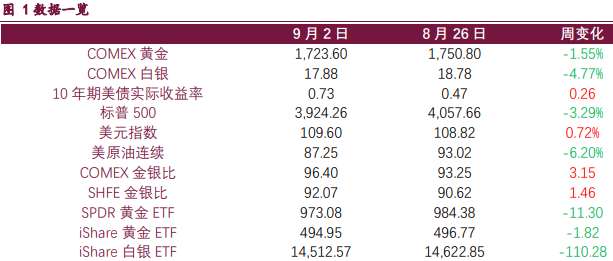 截止9月2日,COMEX金銀比價收于96.4;SHFE金銀比價收于92.07。目前金銀比價處于歷史高位,但若貴金屬下行,金銀比價仍有望持續走高。