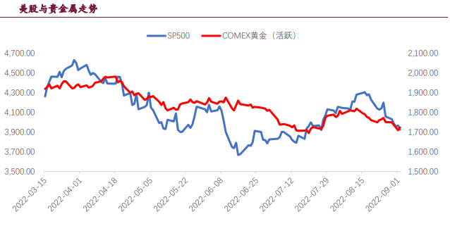 此外,歐洲能源危機愈演愈烈,對于美元指數推動的持續性較強,貴金屬也將承壓。但不可忽略的是衰退預期正在逐步體現對貴金屬的支撐,衰退也是未來貴金屬反轉的主要動力。
