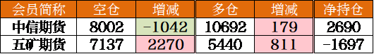 就空單而言,中信期貨減倉超1千手,五礦期貨增倉超1千手。