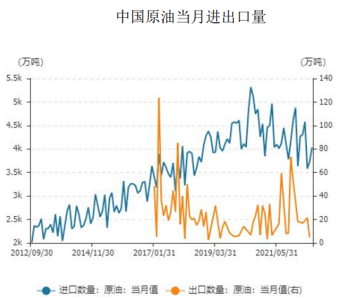 當月原油出口數量為4.62萬噸,與上月比減少16.79萬噸。中國疲軟的經濟數據和嚴格的防疫政策加重了對需求的擔憂。當月中國原油產量為1,712.6萬噸,與上月比減少6.9萬噸;當月我國原油表觀消費量為5,440.98萬噸,與上月比增加160.89萬噸。