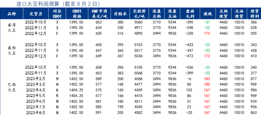 據海關數據顯示,中國7月大豆進口788.3萬噸,6月為825.0萬噸。此外,據Mysteel農產品團隊對2022年9月及10月的進口大豆數量初步統計,其中9月進口大豆到港量預計為610萬噸,10月進口大豆到港量預計為720萬噸。