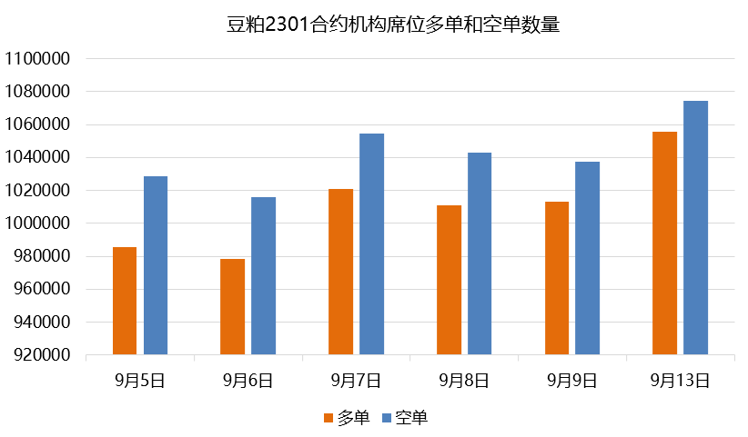 豆粕2301合約前20席位期貨公司持倉數據顯示,今日多單倉位增加42466手至1055592手,空單倉位增加36818手至1074486手,凈持倉為空單18894手。