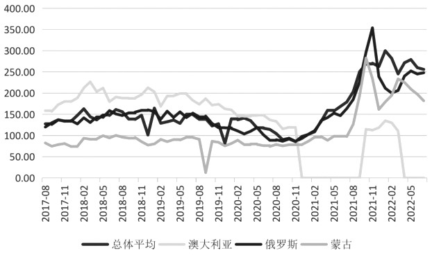 圖為蒙古國短盤運輸價格(單位:元/ 噸)